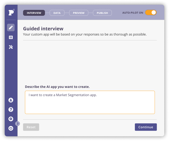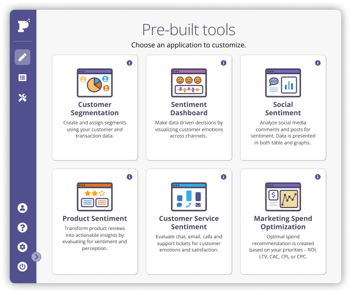 Turn ideas into tools. Tell us what you need and the Wizard guides you through confirming the features of your custom, AI-powered tool.